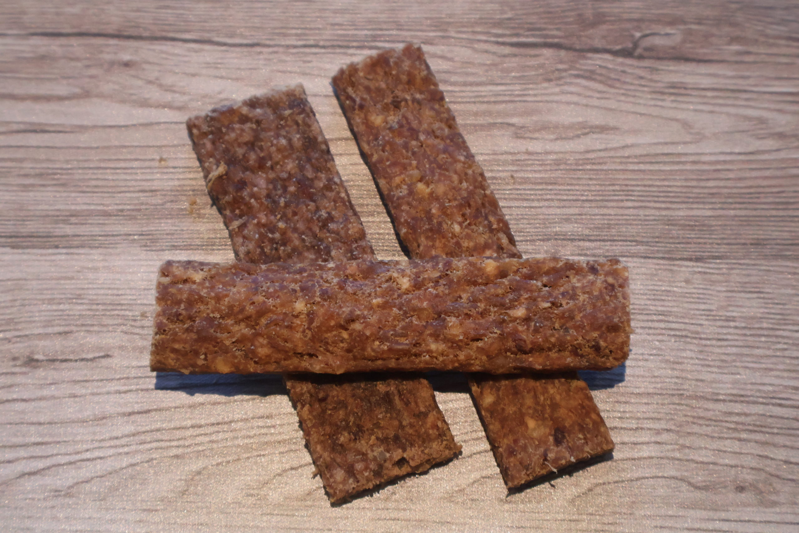D’irrésistibles lanière de viande de mouton pressées et séchées délicatement à l’air pour préserver les qualités naturelles.